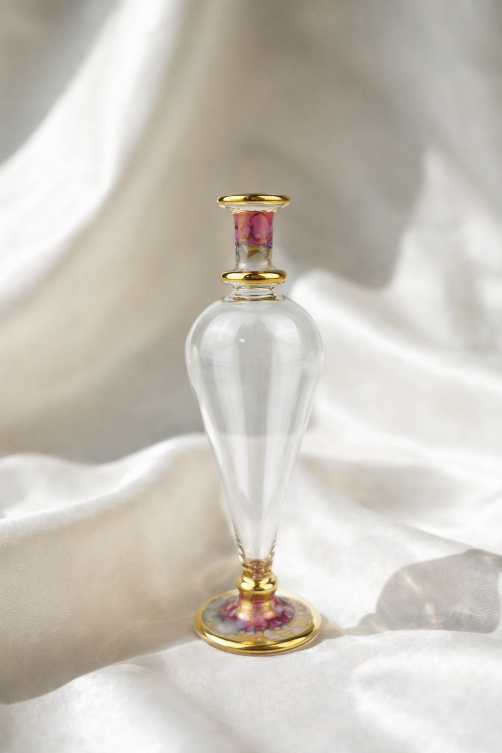 Egypt Glassのボトルは、実用性だけでなく芸術性を追求した優雅な作品です。シンプルで洗練されたデザインから、細部までこだわった彫刻のようなフォルムまで、どのボトルも空間を引き立てるために丁寧に作られています。カラーは、クリスタルのような透明ガラスから、エメラルドグリーンやサファイアブルーの深みのある色合い、ローズピンクやミントグリーンなどの優しいパステルカラーまで幅広く取り揃えています。それぞれの色は、エレガンスと安らぎを感じさせるために厳選されています。また、ボトルには繊細な18金の装飾が施され、優雅な輪郭を際立たせる贅沢なアクセントが加わっています。これらのデザインは、モダンな空間にもクラシックなインテリアにも自然に溶け込み、用途を問わず時代を超えた美しさを提供します